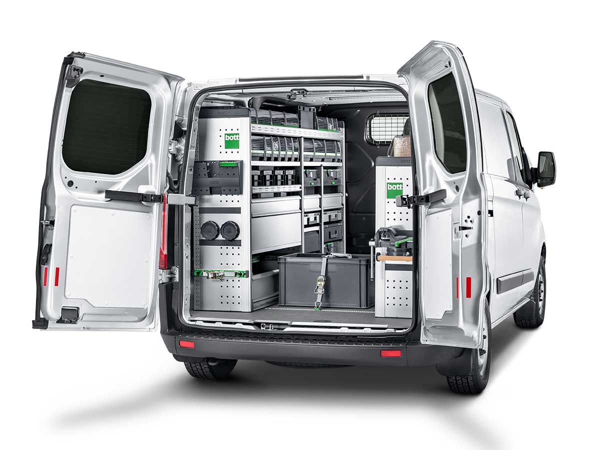 Bott’s produktmix i den helt nye bott vario3 bilindretningsserie er lavet af udelukkende aluminium og kunststof og udmærker sig især ved at den er op til 15% lettere end sin forgænger – men den er også meget mere end bare reoler. Med en bilindretning, der er tilpasset individuelt til kundens eksakte krav, optimerer man arbejdsprocesserne i sit mobile værksted. På grund af den lave vægt sparer man samtidig en masse brændstof. bott vario3 kan konfigureres universelt og byder på et stort udvalg af muligheder for lastsikring og øvrigt tilbehør.